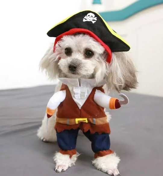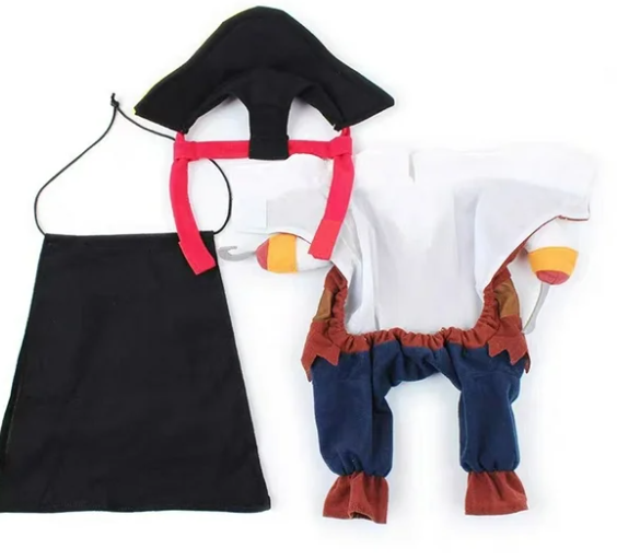 Hecho de poliéster y tela no tejida, suave y transpirable. Este genial disfraz de pirata convertirá a tu mascota en un pirata divertido.